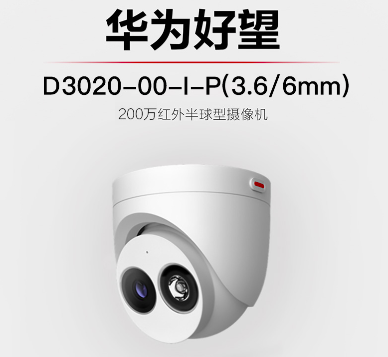華為安防監(jiān)控?cái)z像頭200萬高清POE網(wǎng)線供電智能紅外夜視半球型室內(nèi)家用可拾音目標(biāo)識別D3020-10-I-P(3.6/6mm)